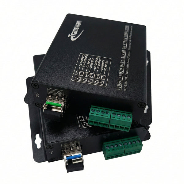 ファイバー エクステンダー シリーズ サポート 8/4/2 チャネル 1 本のマルチモードまたはシングルモード光ファイバーを介した双方向 (2 方向) コンタクト クロージャ。通常、アクセス制御システム、警報イベントのトリガー、ビルオートメーションおよび環境制御システム、火災警報システム、PIR信号送信、交通信号制御装置などのアプリケーションで使用されます。