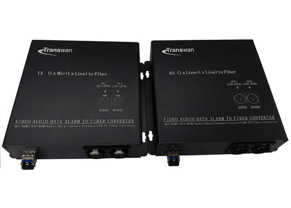 • 1 Ch Mic Level & 1 Ch Line Level (input) Balanced Audio over 500 Meters Multi-mode Fiber or 20 Kilometers Single-mode Fiber, 2 Ch Line-Level Audio Output.